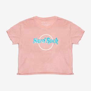 Ladies Fit Foil Logo Crop Tee in Pink The foil Hard Rock logo in bright colors with an awesome trendy crop top for summer. Soft to the touch so you will love to wear it all day long.