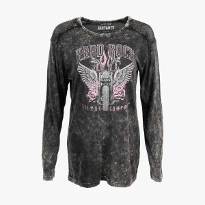 Ladies fit Long Sleeve Tee with Bling Motorcycle Design in Black