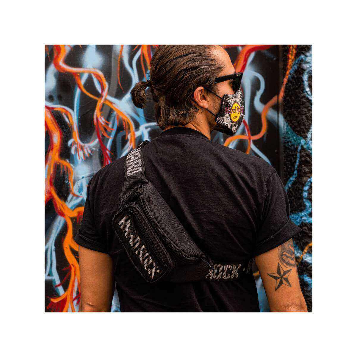 Active Waist Pack The perfect pack for when youíre on the go. Strap this Hard Rock Active Waist Pack around your hips next time youíre traveling to a concert, festival, amusement park or anywhere else you want to enjoy the convenience of hands-free storage. Part of our Hard Rock Activewear collection, this black waist pack pairs perfectly with any outfit and it will easily fit a multitude of sizes. The waist bag features a front webbing strip with Hard Rock logo, also found on the clip-on strap, with three separate zip closures for fitting a variety of small to medium sized items.