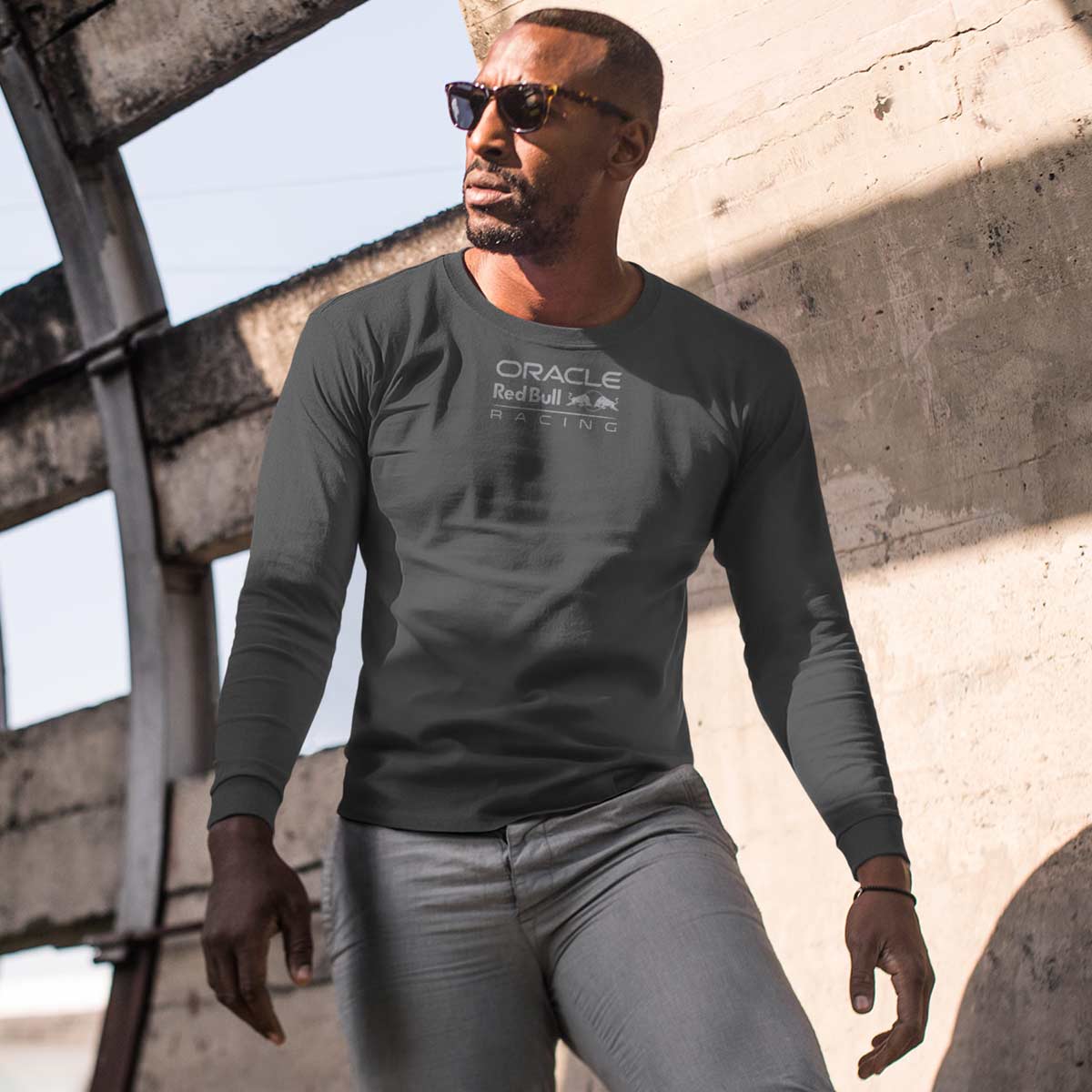 Adult Fit Oracle Red Bull Racing Longsleeve Performance Tee in Charcoal Grey