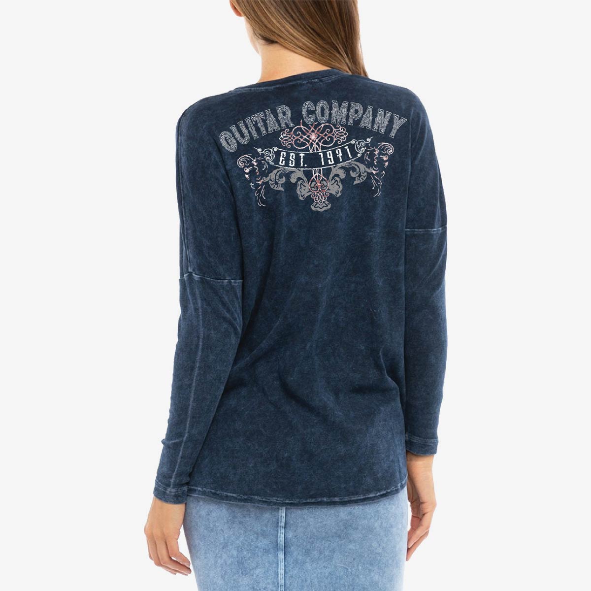 Guitar Company Slim Fit Dropshoulder Longsleeve Tee in Navy