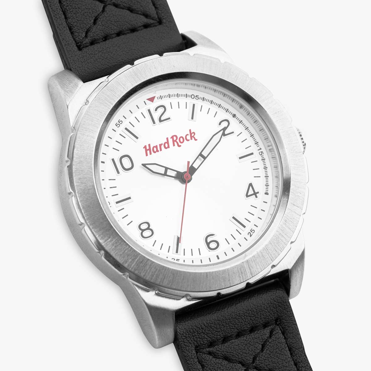 Hard Rock Watch Set with Guitar Wallet in Black Dedicated to all Hard Rock Fans. This set includes a one of a kind Hard Rock watch that is 35mm in size with a stainless steel case, white dial, contrasting dial markers and black vegan leather band. The set also includes a black vegan leather bifold wallet with an embossed electric guitar. Both come in a special giftable Hard Rock keepsake box.