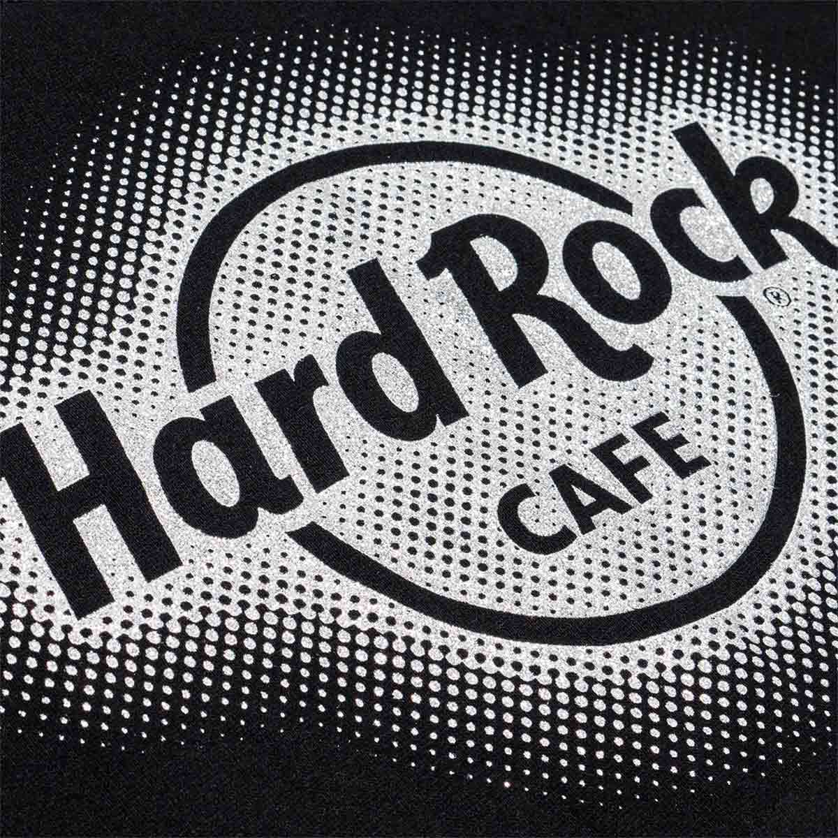 Elevate your style with the Hard Rock Metallic Silver Glitter Logo Ladies Crewneck Sweater. Featuring a logo that sparkles with metallic silver glitter, this sweater is crafted for comfort and style, ready for your chic rock ‘n’ roll adventures. Wear it and shine brighter than the stage lights at any music event.