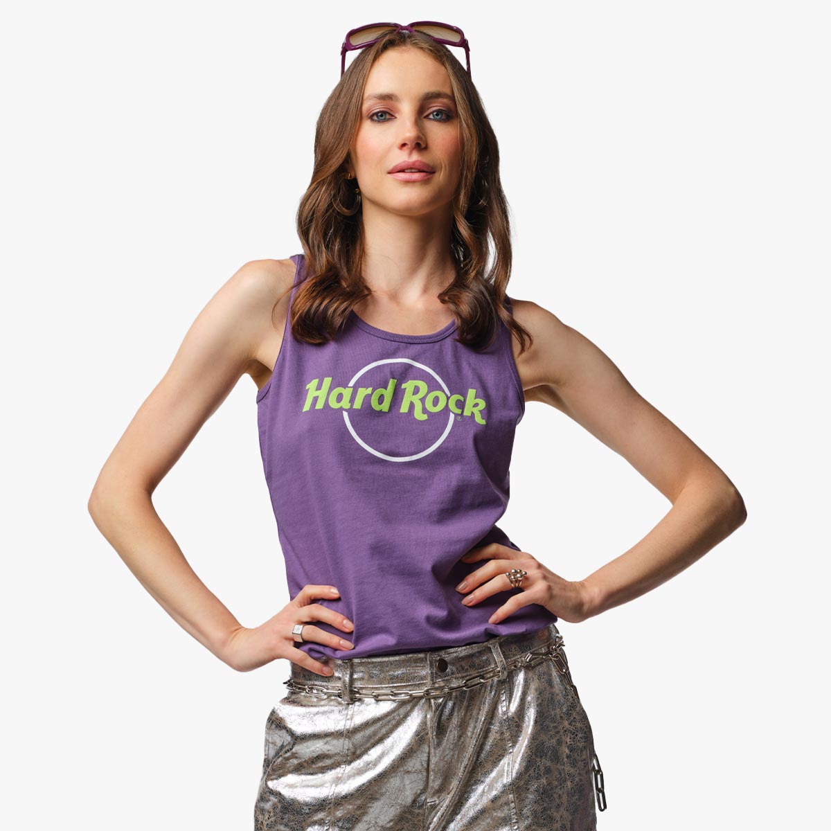Discover a fresh take on the classic Pop of Color collection with our Ladies Fit Pop of Color Tank in Grape Capote. Made from ultra-soft lightweight 100% combed cotton for breathability and versatility, this tank features a vivid raised screen print Hard Rock logo in a fresh contrast lime green with white. It’s an enticingly complimentary color story with its updated design and vibrant hue. A must-have for spring 2024 and beyond, perfect for all your upcoming travel adventures or seaside lounging by the pool.