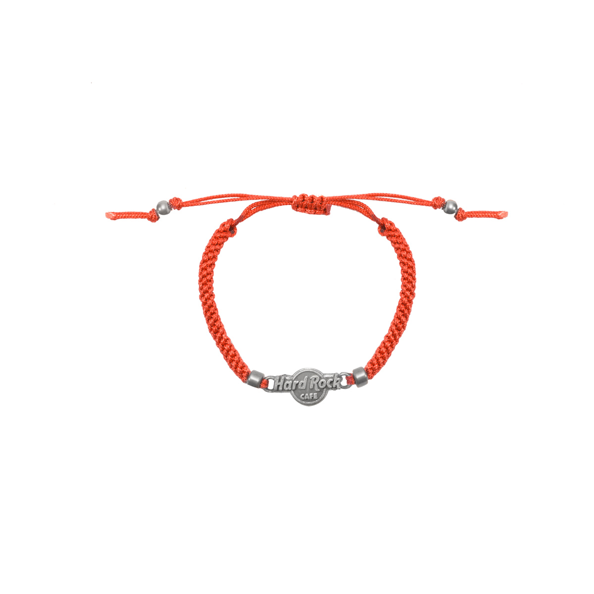 Red Braided Friendship Bracelet This beautifully braided Hard Rock logo friendship bracelet features easy adjustable pull-string closure and lightweight zinc alloy Hard Rock logo charm and beads. Length extends 7in-10in to fit around most size wrists.