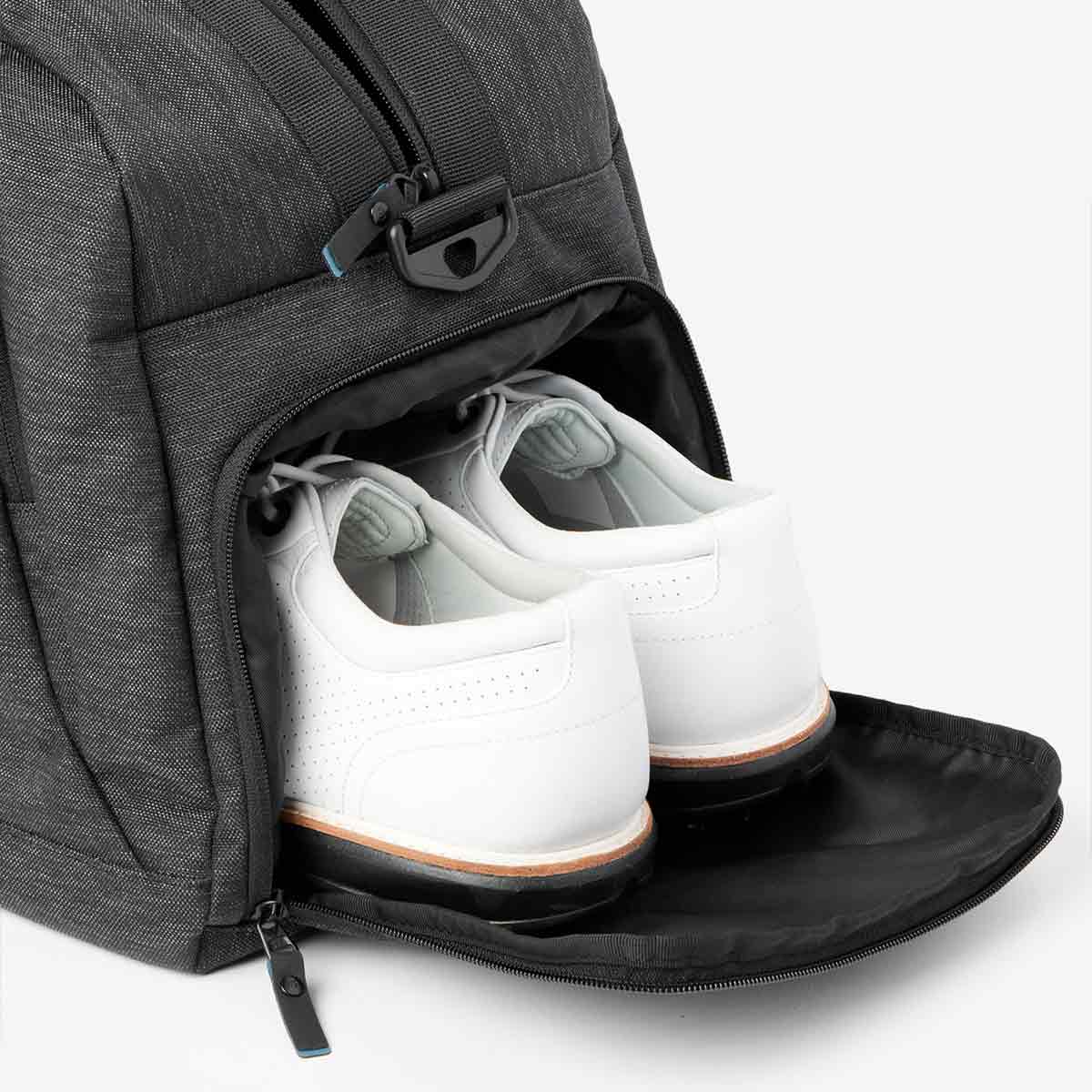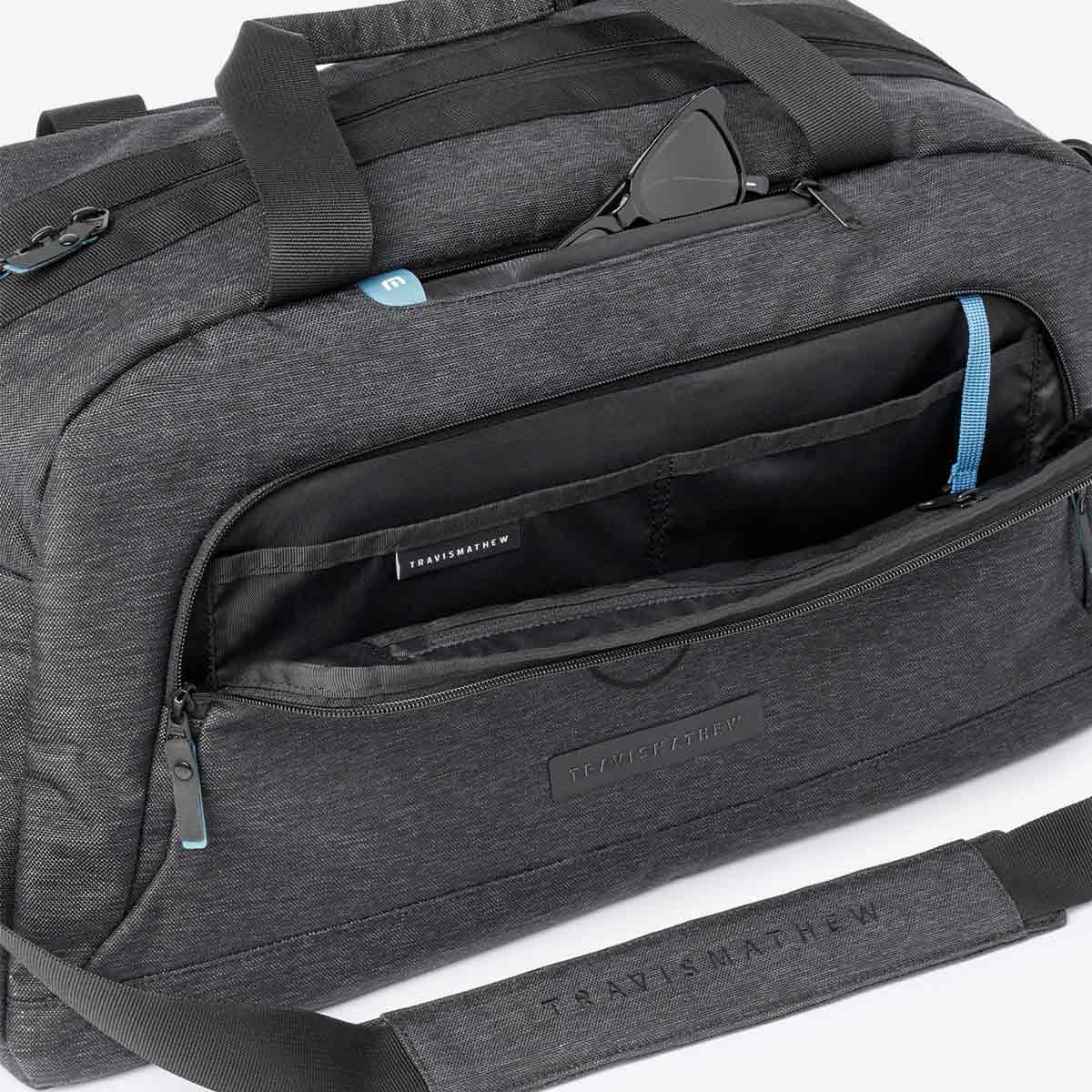 TravisMathew Duffel Bag 2.0 Outfitted with true TravisMathew style, the DUFFEL 2.0 overnight bag includes hidden mesh pockets for organization, a fold-up shoe compartment, and a reinforced base. The ideal bag for your weekend getaways, your pre-work gym sessions, or your post-work golf round.