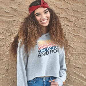 Women’s Grey Logo Crop Hoodie Hard Rock’s iconic classic logo brands the chest of this contemporary cropped hoodie, cut from ultra-soft fleece fabric and featuring a functioning drawstring hood and fitted rib details at the cuffs.